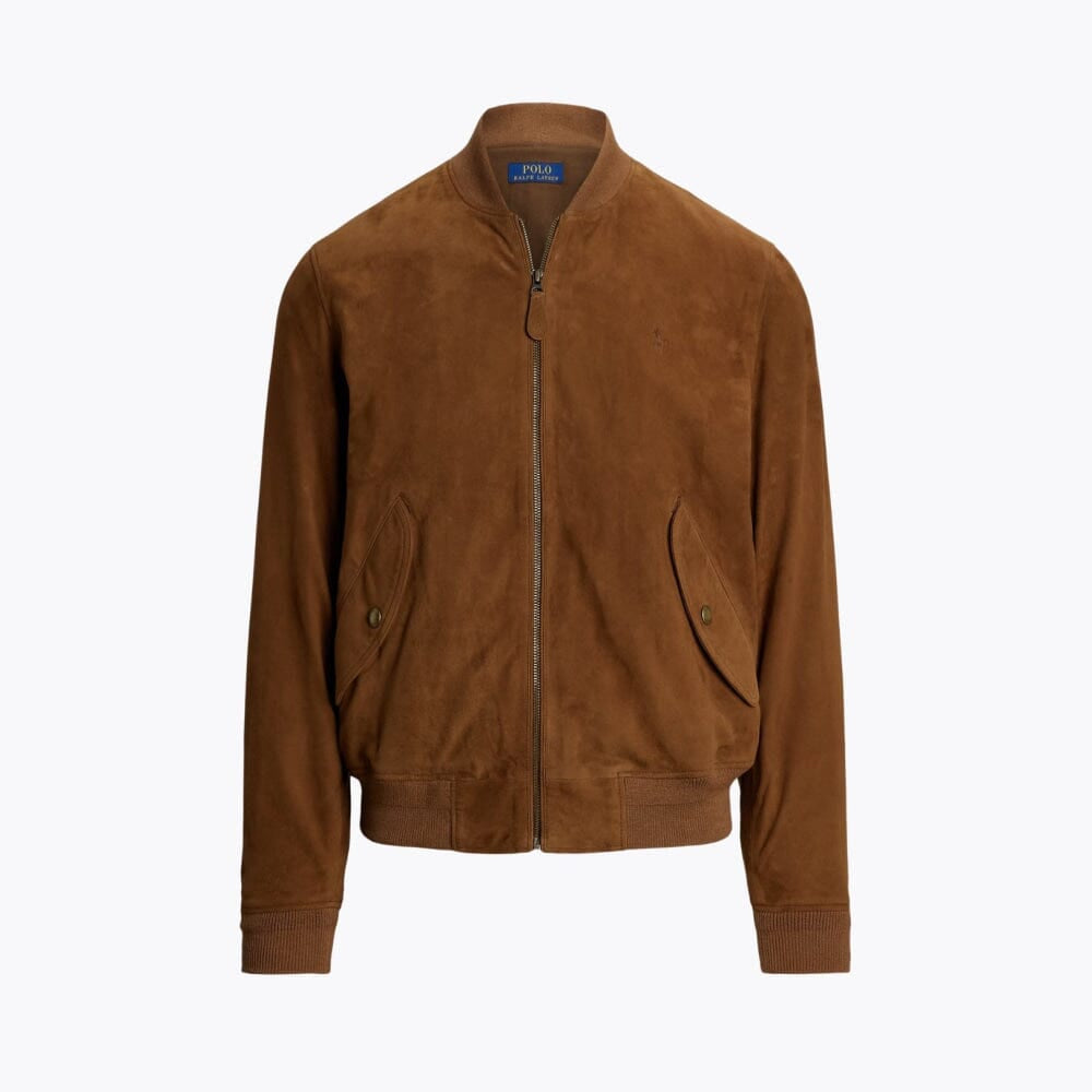 A refined take on the classic bomber, this jacket is crafted from velvety suede and finished with a tonal embroidered chest emblem.
